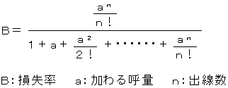 入線数を無限、出線数を有限としたモデルにランダム呼が加わり、呼の回線保留時間分布が指数分布に従い、損失呼は消滅するという前提に基づき、確率的に導かれた式。損失率、加わる呼数、出線数には次の関係がある。