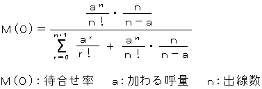 入線数を無限、出回線数nを有限としたモデルにランダム呼が加わり、呼の回線保留時間分布が指数分布に従い、待合わせ放棄呼はないという前提に基づき、確率的に導かれた式。待合せ率、加わる呼量、出線数には次の関係がある。また、η=a/nのことを出線能率という。