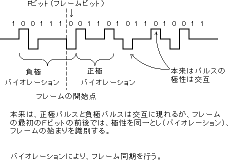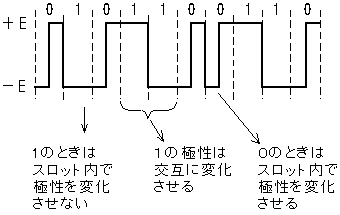 「0」をパルスあり、「1」をパルスなしに対応させ、パルスの極性を交互に反転させて伝送する符号。フレーム同期は、バイオレーションにより行う。ISDN基本インタフェースで用いられている。