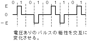 単流方式の変形であって、単流方式の電圧ありのパルスを交互にプラス、マイナスの極性に変化させる方式。ISDNの基本インタフェースの伝送でAMI符号として利用されている。