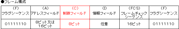 8ビットで構成され、フレームの種別、コマンド/レスポンスの種別、送受信順序番号等の制御情報を設定する。フレームの種別には、Iフレーム、Sフレーム、Uフレームの3種類がある。