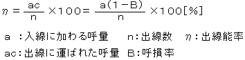 最繁時呼数の1日中の呼数に対する比率[%]。最繁時集中率は、次式で表さられる。