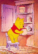- プーは巣穴に手をつっこむと、みつをすくってなめました。
