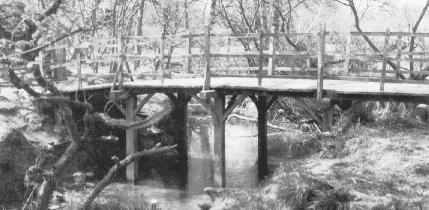 橋のこちらで枝を投げて、急いで橋の反対側へ行ってのぞきこみ、2人の棒のどちらが早く流れてくるかを競う遊び