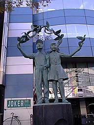 タックスノットが入っているビルのほぼ前に、小さな公共スペースがある。何カ月か前に、そのスペースが化粧直しされ、植え込みなどが作られたのだが、つい最近、その中央に銅像が建った。