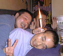 しかし、耳に火の点いたロウソクをつっこんで横になっているオカビーの姿は間違いなく面白かった。これがその写真。