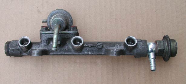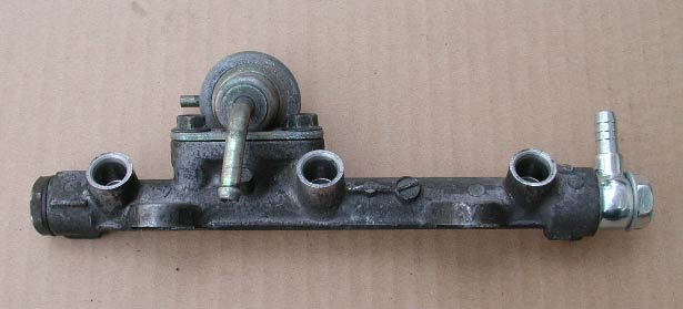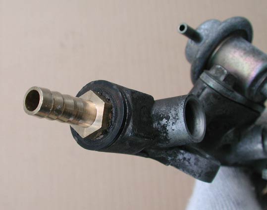 さらにデリバリパイプのブラインドキャップを外してニップル(M12×P1.25)を取り付け、このニップルに燃圧計をつけることで、パルセーションダンパー有り/無しで燃圧がどのように変化するかを計測することができるようになる。