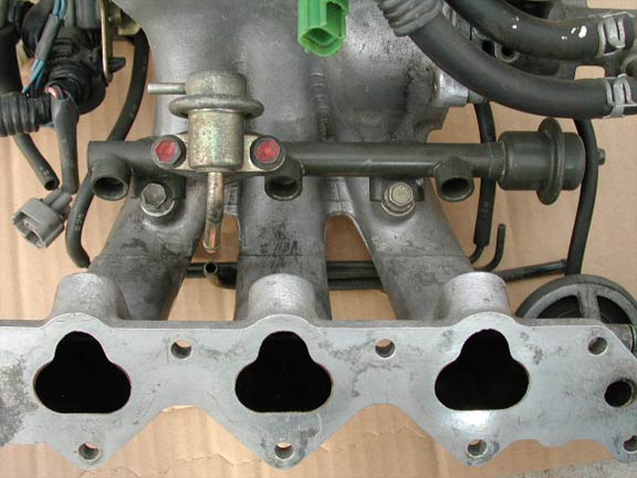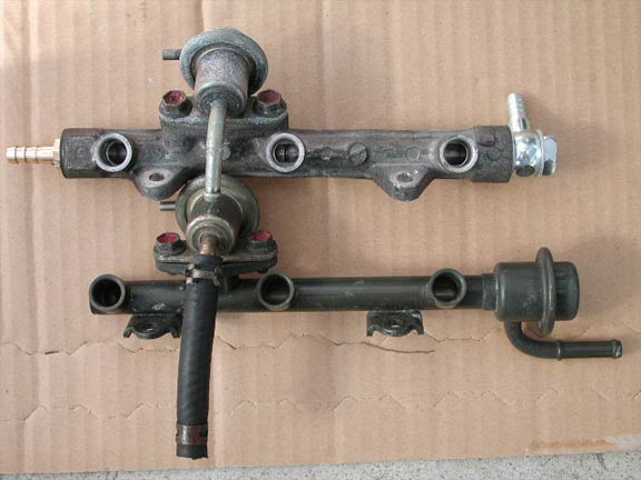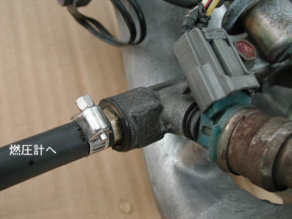 ニップルは燃圧計に、プレッシャーレギュレーターはバキュームポンプへと接続する。プレッシャーレギュレーターは、吸気管負圧に応じて燃圧を調整する役目を持つ。