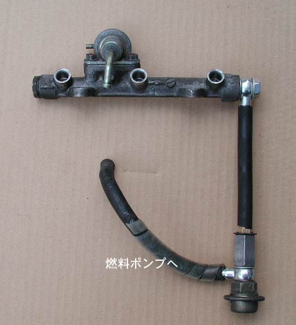 上記2つをこのように接続する。すると、パルセーションダンパーを後付けしたようなかたちになり、AZ−1純正のパルセーションダンパー一体型デリバリパイプと性能的には等価になる。