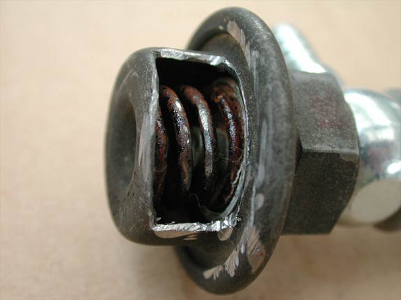 パルセーションダンパー部分の頭を削って、中の動きが見えるようにしている。なおこのように削ってもガソリンが漏れ出すことはない。