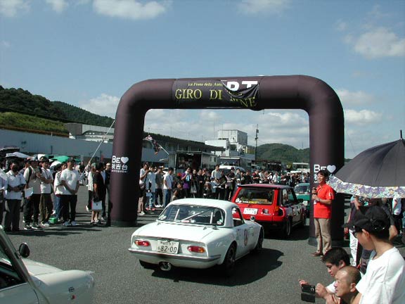内容は、愛車走行会、787Bの走行、寺田陽次郎さんのサイン会、ゲストトークショー、ガレージセールさらには交通安全パレードやら、GIRO DI MINE(ラリー)のゴールなど、多岐にわたる。