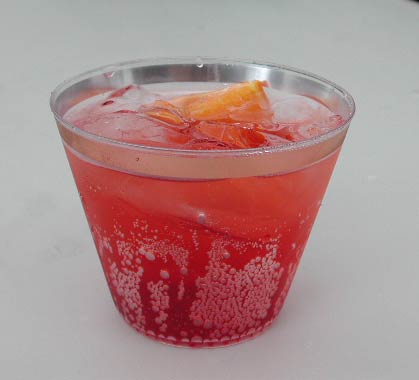 振る舞われたのは3種類。「海田湾の夜明け」だが、実際の所は湾の東側すぐに山がある。そのため水平線に近い所から日が昇るという感じにはならない。従って、カクテルの下側の青は海を指すのではなく、山を指していると思われる。