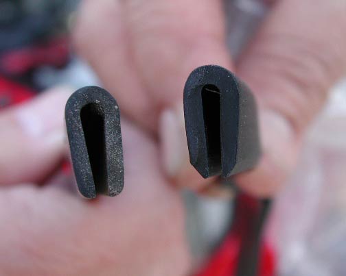 ネタを紹介してもらった。エンジンフード周辺にあるゴムモール、P100-56-915及び916の代替品である。この部品は両面テープのようなもので貼り付けられているのだが、外れやすい。特に右側(ステーのある側)のP100-56-916がなくなりやすい。いつの間にか消えていたという人も多いのでは? 私もその一人。購入場所はアマゾンとのこと。