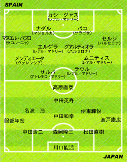 なお、トルシエ監督の会見はこのあと行われる予定となっている。 カマーチョ監督「(スペイン代表のコンディションについて)今回はフランスを1−2で敗ったあとに、20人のメンバーを選んだが、結局18人になってしまった。今週の月曜日に合流したばかりで、しかもヨーロッパはどこもリーグ、カップ、すべてのタイトルの渦中にあり、選手は非常に高いストレスを感じている状態だ。今回は3日間、とにかく休むこと、体を休息させることに主眼を置いている。 ラウル「(日本の印象について)日本には非常にいい選手が多いと思う。私自身のコンディションは今、非常にいい状態だ。今回は(モリエンテスが故障のために)FWが変わるが、どちらにしても非常にいいFWで、自分は組みやすいと思っている。(スタメンが予想される)サルバは、2部リーグのチームにいながら18得点を奪っており、すばらしい選手だと思う。 トルシエ監督記者会見