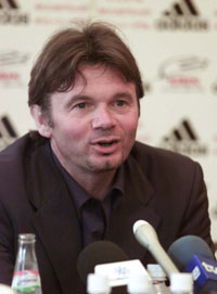 監督 じゃあ、あなた(質問者に向かって)は誰がいいのですか。キャプテン、あるいはリーダーシップに関するものは、日本の文化に深く関わっているので非常に難しいです。西洋で見られるキャプテンは、日本では考えられない。このチームのキャプテンは私です。日本人チームの中におけるキャプテンの役割は、審判と友好的に挨拶を交わし、理想的なキャプテンはほしいと思うが、日本ではそれは無理で、一番年を取っている人を選ぶでしょう。私は、それ(年功序列のこと)はよくないと思う。リーダーというのは、私の目では、日本の社会には存在していない。しかし、典型的なキャプテンがいなくても、それは問題でも悪いことでもない。逆に定義をしてほしいのだが、キャプテンシーの定義とはあなたには何ですか。私はキャプテンの理想はないし、その存在自体を否定している。キャプテンとかキャプテンシーの問題は、非常によく聞かれているが、そのキャプテンというのが、イコール存在感のある人というわけでもないし、キャプテンの大切さは私は感じない。逆にあなた方の大切にしているキャプテンというのは、どういうものか教えてほしい。日本が強くなるには、キャプテンを決めるのではなくて、8割の選手が海外に移籍してくれればいいのではないか。 ──明日の試合で得点を奪うにはどうすればいいのか ──昨年のカールスバーグ杯からスタメンだった稲本が今回の代表メンバーから落ちているが、戦術的な問題か、それともコンディションか