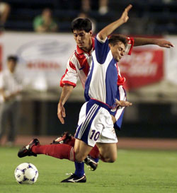 今回は、中田英寿(ASローマ)、西澤明訓の海外組と、故障中の名波 浩(磐田)、中村俊輔(横浜FM)らが不参加だが、パラグアイから一時帰国をしたMF廣山 望(セロ・ポルテ−ニョ)が初めてA代表入りを果たした。