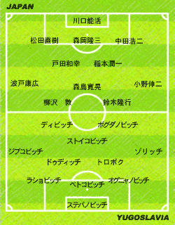 「胸が一杯で」 代表を引退するストイコビッチは会見で言葉を選びながら話した。 グランパスで7年、世界一級品の技を見せ続けた妖精の代表引退試合として、文字通りの花束もなかったし、ある意味の「華やかさ」も欠いていた。会見を終えると、息子と手をつないでミックスゾーンを引き上げたが、どの質問にも答えることはなく、うつむき黙ったまま、大きなつい立ての後ろに去って行っただけである。あれだけの「物悲しさ」が漂う引退試合は、逆に胸を打たれるものがあった。 92年、その技の絶頂期とも言える時期に、母国ユーゴスラビアの内戦によって、国際舞台からスポイルされることになった。その年の欧州選手権、94年のW杯、自分が母国・セルビアを愛すれば愛するほど、その政策は彼と愛するサッカーを裏切ったことになる。93年以降は、ボスニア・ヘルツェゴビナの紛争、アルバニア系住民への弾圧……、と出場停止期間は絶望的な長さとなり、足も心も腐りかけた。「胸が一杯」と言った短い言葉は、そんな時期にひとつの救いとなった日本のサッカーへの愛情、そして沈黙してきた政治とスポーツへの恨みなのか、それとも心からの理解なのか、こうした複雑な心境すべてを、この晩、ストイコビッチは心の奥に封印したのではないかと思う。 会見で取り上げられることはまったくなかったが、その彼の祖国では、当時のユーゴでの戦争犯罪責任を問われたミロシェビッチ前大統領がハーグ(オランダ)の国際法廷で、国家元首としては初めて法廷にかけられるという、かつてない裁判が始まった。国際的には、これがこの日のトップニュースである。