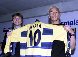 この日、パルマへの移籍を発表した中田英寿 |