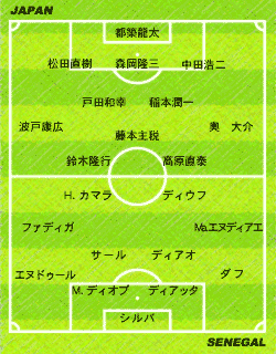 森岡隆三(清水)「ボールを取られたあと戻るのがきつかった。いいポジショニングを取る前に早く仕掛けられてしまっていた。体を入れてドリブルのコースにきちんと入るべきところを、先に入られてしまい何もできなかった。セネガルの選手の切り返しはとても深い。 松田直樹(横浜FM)「今まで戦ったチームの中では最も完成しているチームだったと思う。そういうチームとの対戦は少ないから非常にいい経験になりました。やられて悔しいけれど、問題点ははっきりしていた。最後の集中力が足りないところだ。合宿の当初はいつもそうで、あまりいい動きができない。これから(ディフェンスの)3人で話してやっていきたいと思う」 服部年宏(磐田)「個人的にはパスのスピードを上げるべきだと思った。ベンチで見ていたら動きが悪いというよりパスのスピードが遅かった。後半から入る時には、とにかくやるべきことをしっかりやろうという気持ちだった。1試合目は正直なところ動きはよくないと思う。次の試合で今日の課題をどうやって活かすかが一番大事なのではないか。セネガルは思った以上にテクニックがあったし、非常にディフェンスがうまいという印象を持った。今日負けたことは少しもマイナスに考えることはないし、負けたとしても次への課題をしっかり見つければそれでいい。そういうための遠征だと思います」 都築龍太(G大阪)「セネガルは非常に強かった。個人的にも優れていたし、戦術的にも徹底していた、そういうチームだった。(フリーキックから先取点を奪われた場面では、相手が2枚、壁のところをあけたのではないかと聞かれ)いや、そんなことはありません。普通に、きれいに入れられました。(よく凌いだのではないか、との問いに)いや、やはり相手の詰めが甘いところに助けられました。いろいろな意味で課題が残る試合だと思う。どうしても前半から攻め込まれてしまってバタバタしてしまったことが反省点です」 藤本主税(広島)「45分間プレーができて、とても楽しかった。自分としては、持ち味を生かそうと思ったのでディフェンスラインの後ろを走るようにしたけれども、ボールが出てこなかった。そういう動きはやはりコンビネーションが大事なので、この1回の試合だけでどうこうと判断はできない。試合を経験していく中で作っていくしかないでしょう」 先取点を決めたディウフ「セネガルの国民にとっても、私たちにとっても、日本のようなすばらしいチームに勝てたことはとてもうれしい。自分が点を取ったからというわけではなくて、ほかの選手も非常にいいプレーをしたし、全体的に一体感があったと思う」 名波 浩(磐田)「あまり詳しいことは言えないけれども、試合をやれるようなレベルではないというように言われている。悪化はしていない。今までの回復ぶりと同じ様態です。ただ、(治療への取り組みを)どういう方向に進めばいいのかを示して欲しいし、そこに早く動き始めたいと思う。今でも80〜85%ではできると思う。2ndステージ、チャンピオンシップともに、現時点では無理だと思う。もちろん来年のワールドカップを目指して、早く治して万全な体勢を取りたいという気持ちがある。協会にも磐田にも迷惑をかけてしまった。飛行機の影響で多少(患部に)水がたまったけれど、今はもう腫れはまったくない。楽しくサッカーをやるレベルに、早く戻りたいと思う」 大仁邦彌技術委員長「いい経験になりました」