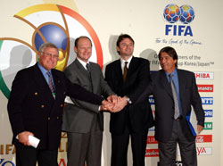 ※無断転載を一切禁じます サッカー 2002年ワールドカップ組み合わせ抽選会がこの日、韓国、釜山で行われ、グループリーグ組み分けが決定した。日本と同じH組に入ったのはベルギー、ロシア、チュニジア。日本の初戦の対戦相手はベルギー(6月4日、埼玉)、第2戦目はロシア(6月9日、横浜)、第3戦目はチュニジア(6月14日、大阪)となった。なお、グループEからHの試合が日本で行われる。 グループリーグ組み合わせ抽選後のコメント トルシエ監督「すばらしいセレモニーだった。サッカー界のスターが集まり、私もここにいられたことは光栄である。グループについて、みなさんはいいとか悪いとか、そういうことを言うだろうが、私自身は解説をしたくない。それぞれの国をとても尊重している。ようするに、これはいいドロー(※抽選)とか、そういうことはまったくありません。例えば、このグループは決勝トーナメントに行けますよと言ったところで、それぞれの監督の顔を見ればわかるように、みんなが非常に満足げ(=自信があるようす)だった。見てわかるように、このグループは非常にオープンなグループだ。何が起こるかわからない。あと半年あるので、今の状況で何か言うことはできないだろう。日本は情報を収集し、あと半年の間しっかりとした準備をしなければならない。黄金の言葉というのは“謙虚さ”だと思う。予想をしてはならないし、今の段階では、準備をしっかりする、と言うだけだ。ベルギーとロシアは過去の歴史から見ても強いだろう。しかし、試合がどういうものになるかはわからない。ワールドカップの目標は、改めて言うまでもなく、前からグループリーグ突破と言っている。この責任をしっかり受け止めていかなくてはならない。これから大きなプレッシャーがかかってくるだろう。その中で、冷静に、落ち着いていかねばならない」