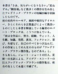 裏表紙の紹介文が2種類存在するのが「フレドリック・ブラウン傑作集」です。今回司書つかささんのご厚意により入手することができました。おそらく再版時に変更されたものと思われますが、例外もあり入手時には注意が必要です。