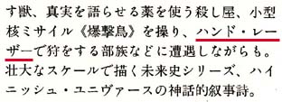 ただし「ノヴァ急報」と「レベル・セブン」にはマークがないものは確認できていません。また「万華鏡」は二刷以降はマークがありませんが、初版にマークなしがあるかどうかは不明です。(追記)「レベル・セブン」にもマークなしが確認できました。