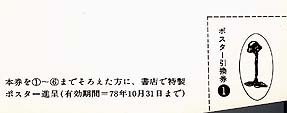 初回配本の6冊には裏表紙見返りにポスター引換券なる火星人マークが付いています。それぞれ1から6までの番号が付加され、全部揃えれば特製ポスターがもらえるという特典です。こういったものは有効期限(78年10月31日)を過ぎれば不要なので、サンリオ側としては混乱を避けるために一刻も早くはずしたいはずです。ということでこのマークのないヴァージョンが存在しています。