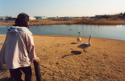 訪問した2008年11月には、園内の池にどこかから白鳥が飛来していました。