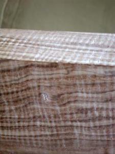 ![]() 荒削り終了。 ここまでは機械での作業でしたがこれから は手作業での仕上げ工程に移ります。 サンドペーパーで研磨・・・ひたすらゴシ ゴシ。 白いのはメイプルのトラ模様。よくあるヤツ。 黄味がかった茶のはマイフェバリットのケヤ キ。チョコレート色のはウオールナットのトラ 模様。赤みがかったのがカリン。 それに樹種のわからない何本か・・・。 |