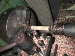 ![]() 汎用旋盤でリールシートフィラーの荒削り。 |