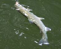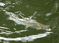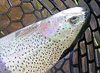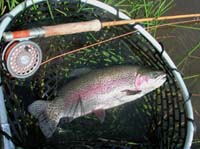 夏休み・・・そして猛暑。高原は暑くても木陰での風が気持ちよく・・・しかし!! つい3日前までは絶好調でした無印良品 津南キャンプ場 のフィッシングエリア・・・センターポンドそして薬師湖 ・・いずれも水温急上昇。 フィッシングとしては厳しく なりました。 表層の水温は25℃を超えました・・・しかし、反面、 今までの少々イージーでも釣れてしまう状況からどうしたら 魚がフライをくわえてくれるか工夫のしどころが結果に大き く差をつけるようになります。 しっかりと魚にフライをアピールできればご覧の通り、美形 &パワフルな相棒が相手してくれます。 ![]() 8月8日 水 雷雨(9時現在) 7日は無印良品 津南キャンプ場でのフライキャスティング 教室でいい汗をタップリ・・・時折吹き抜ける高原の風が 気持ちよく・・・・参加の皆さんと良い時間を過ごすことが できました。 画像は薬師湖でのニジマス約45センチ。 ヒレの発達した野性味タップリのキャッチです。フライは今 回も飽きず「セミフライ」、裏狙いも「大物コイ」・・・ オオモノコイ???ごめんなさいませ。 裏本命は残念ながら3〜40センチクラスが一匹だけ近くに 姿を現せてくれたのみでノーチャンスでしたがココロ広きニ ジマスさんは果敢にセミフライにアタックしてくれました。 ・・・ホントにこのお魚って管理釣り場のお魚? ヒレピンでパワフル!なんてったって「ビューティフル」。 ブナ林との組み合わせ・・・癒されます。 ![]() | ・ |