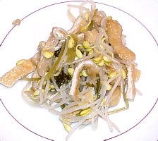 油豆腐拌豆芽、これも上海系のお惣菜です。 一見粗末な料理ですがこの味がすばらしい。 家庭料理なので他のものより幾分塩分きつめになっているところも好感がもてました。 ご飯を出してもらえばよかったかなとちょっと残念です。 でも、中国人は普段こういったお惣菜を食べているので体を壊さないのでしょうね。 これが、普通の日本人のような中華の食べ方を続けたらまず完全に御陀仏でしょう。