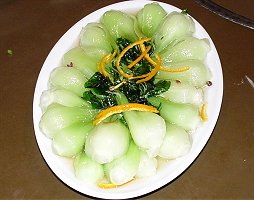 ところで宴会の菜譜ですが、まず前菜は蘇州の家庭料理から脆嫩蘿蔔絲と酒菜の二品を選択しました。 脆嫩蘿蔔絲は中華版大根サラダといったところであっさりしたしあがりになっています。 酒菜は野菜を紹興酒につけて作る一風変わった冷菜です。 陳皮、山椒などがアクセント加え複雑な味わいをかもし出しておりなかなかにいけてました。