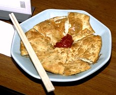 上の写真は葱油餅ですが中華街あたりで出てくる韓国料理のチジミもどきとは違ってかなり本格的なものでした。 下の写真は相席となった台湾人の親子です。 彼らとはいろいろとお話をしたのですが歌舞伎町の金栄の豆漿が美味しいと言う情報はとても有り難かったです。