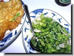 荳瓣雪菜いいですね。 この店のものは固めにゆでた蚕豆が使われていましたが、店によってはもっと柔らかめ、更に半たたき状からマッシュしたものまでとさまざまです。 この硬めの蚕豆とフレッシュで芥子菜の味のする雪菜の漬物の取り合わせが秀逸です。 一見素朴なこのような料理でも蚕豆をゆでて出汁に漬けておいてと出来あがるまでにはまるまる二日はかかってしまうのです。 その料理のうちに封じ込められた時間も味を決める重要な要素なのでしょうね。 日本では料理の値段は人件費ですからこう言った本当の味は最初っから幻だと思ったほうが無難なようです。 いや、台北や香港でも観光客相手の有名店は同様な問題を抱えているといってもそうはずしてはいないと思います。