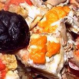- 紅[虫尋]米[米羔](蟹おこわ)は代表的な台湾料理。子をびっしりと持った紅[虫尋](渡り蟹の一種)を使って作ります。