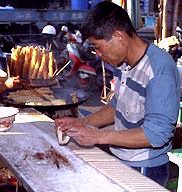 - 台中の市場で見かけた春巻きの皮を作るおばさんです。