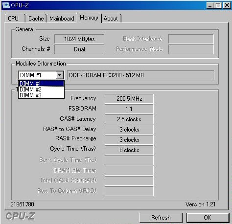 マザーボード(EPOX)EP-8RDA+に、バルクメモリ3本で規格だけ合わせたら(PC3200/8-3-3-2.5)すんなりデュアル動作した。定格はFSB333MHz-DDR400MHzだが、FSB400MHz-DDR400MHzで動作している。(CPUの電圧はやや高めにしてあるので、50℃前後)