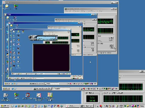上の画面は3台をリモート操作しているところ。全て無線LANアクセスポイント(11Mbps)経由の別建屋にあるパソコンで(上二つがWin XP Pro、下がWin2000 Pro)操作している大元はWin XP Pro。無線経由でも操作にほとんどストレスは感じない。3台ともOSインストール以外ほとんどの操作はVNCを使ったリモートで行った。主だったアプリケーション、デバイス、ネットワークの設定もできるし、シャットダウン・再起動も問題なくできる。