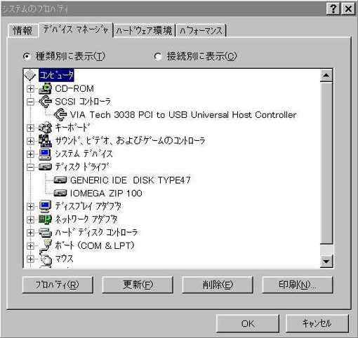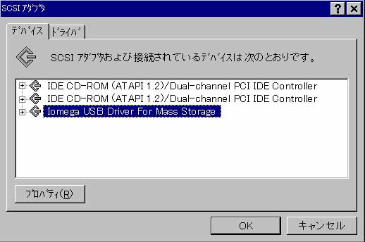 | IOMEGA USB ZIP100はWin95、WinNT上ではSCSI機器として認識 (M/BはP3V4X) |