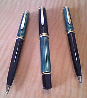 右からペリカンのシャープペンシル、万年筆