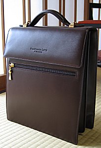 で、結局のところ既製の鞄はあくまで参考品的な位置づけかな、と思えました。それらの既製の品々を拝見させてもらう際も製造作業中の店主にわざわざ声をかけて手を止めていただいて天井からつり下げられている既製鞄を見せてもらうという スタイル。恐縮してしまいます。せっかくなので布製のポシェット鞄を購入しましたが店内に長らく吊られていたため埃まみれで した。(このお店の名誉のために申し上げると本来、注文生産の鞄作りのお店なのですから既製の鞄を求めた私が間違っていたのだと思います。このお店の真価は注文鞄で判断すべきでしょう。ちなみにここの店主さんは大滝秀治を彷彿するいかにも職人風の方でそれぞれの鞄について説明を求めると「これは丈夫ですよ!」と丈夫さを強調されていました。 )