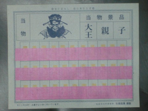 | 概要 | 菓子自体にくじが入っており、それを引いて楽しむもの。 あるいは、くじと複数の種類の菓子が入っており、くじを引き、結果によって異なる菓子が得られるもの。 地域名産のものもある。 |
