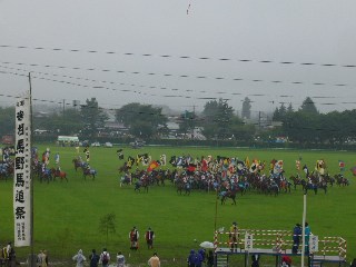 各郷の騎馬が雲雀ヶ原祭場に集結し、郷毎に競馬を行う。
