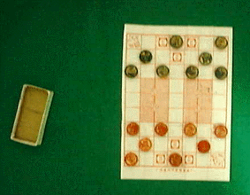 概要  中国に伝わる2人用のボードゲーム。 それぞれ象、獅子、虎、豹、犬、狼、猫、鼠の駒を持って闘います。初期配置は下図の通りです。 駒に強さがあり、上記の序列になっていて象が最も強く、鼠が最も弱い駒です。上は必ず下に勝ちます。ただし、一番下の鼠は一番上の象にだけ勝ちます。先に敵の本陣に自分の駒を入れれば勝ちです。