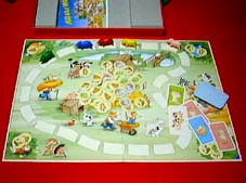 5色の豚の駒を進めて野菜の駒を取るゲーム。 自分の勧めた豚が列の先頭に立つと野菜駒を確保できるのだが、 最終的に先頭にならないと返さなければならない。