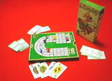 競馬のボードゲーム。馬を進めるカードを配り、賭を行ない、レースを行って配当を精算する。