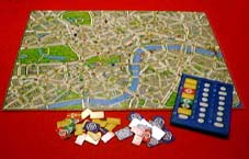 | 概要 | スコットランドヤードとはロンドン警視庁の事。ロンドンを逃げ回る怪盗Xと、 ロンドン警視庁の追跡ゲーム。プレイヤーは一人が怪盗X、 残りがスコットランドヤードの刑事を受け持つ。 ロンドンの街を舞台に双方地下鉄、バス、タクシー、テムズ川の渡し舟の4種類の交通機関を使って移動するのだが、 枚数に限りのある切符が必要である。霧の都らしく怪盗Xは数ターンに1回しか姿を現さない。 1ターン1時間で24時間逃げ切れば怪盗Xの勝ち。 |