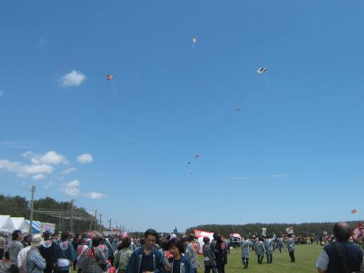 静岡県浜松市では、毎年ゴールデンウィークに浜松まつりがおこなわれている。 その中の一つとして開かれるのが「凧合戦」。市内に150以上もの組があり、それぞれ独自の紋所を持っている。この一年に生まれた子供の名前を入れた凧を揚げるところも。糸が絡むと切り合うが得点などはない。 (2012. 5. 4)