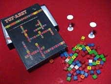 ミルトン&ブラッドリー社他から発売されています。1枚の牌(タイル)に一つの 文字が書いてありこれをボード上に並べて単語を作るゲーム。オリジナルゲームとし ては世界1、2位の売り上げを誇り、2年に一度世界大会が開催される。![]()
